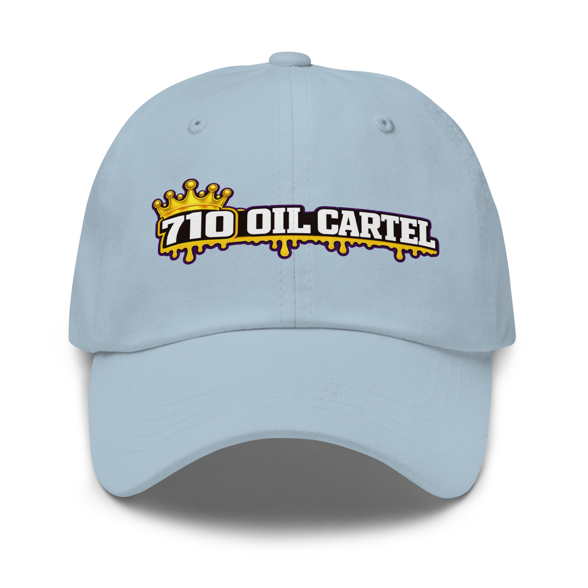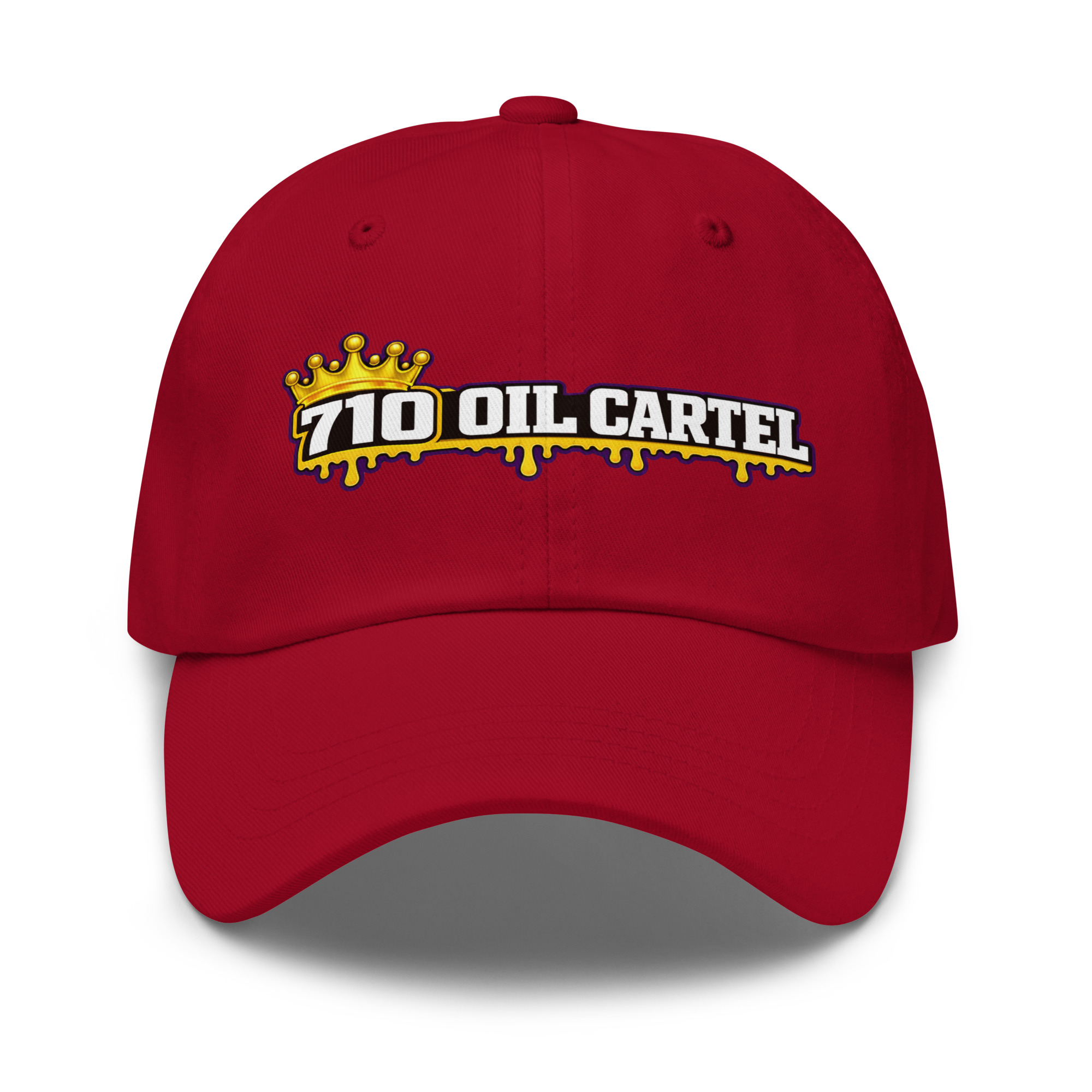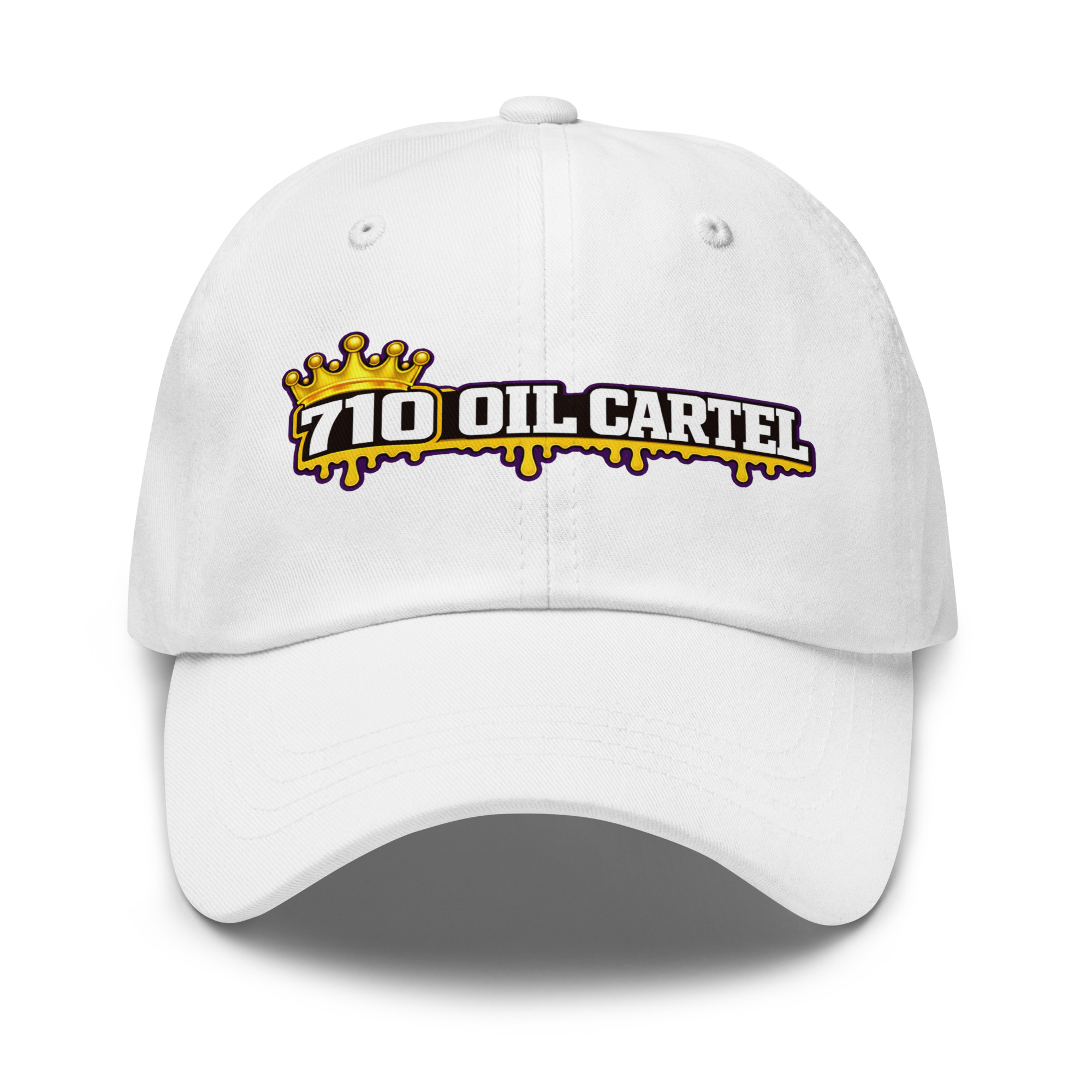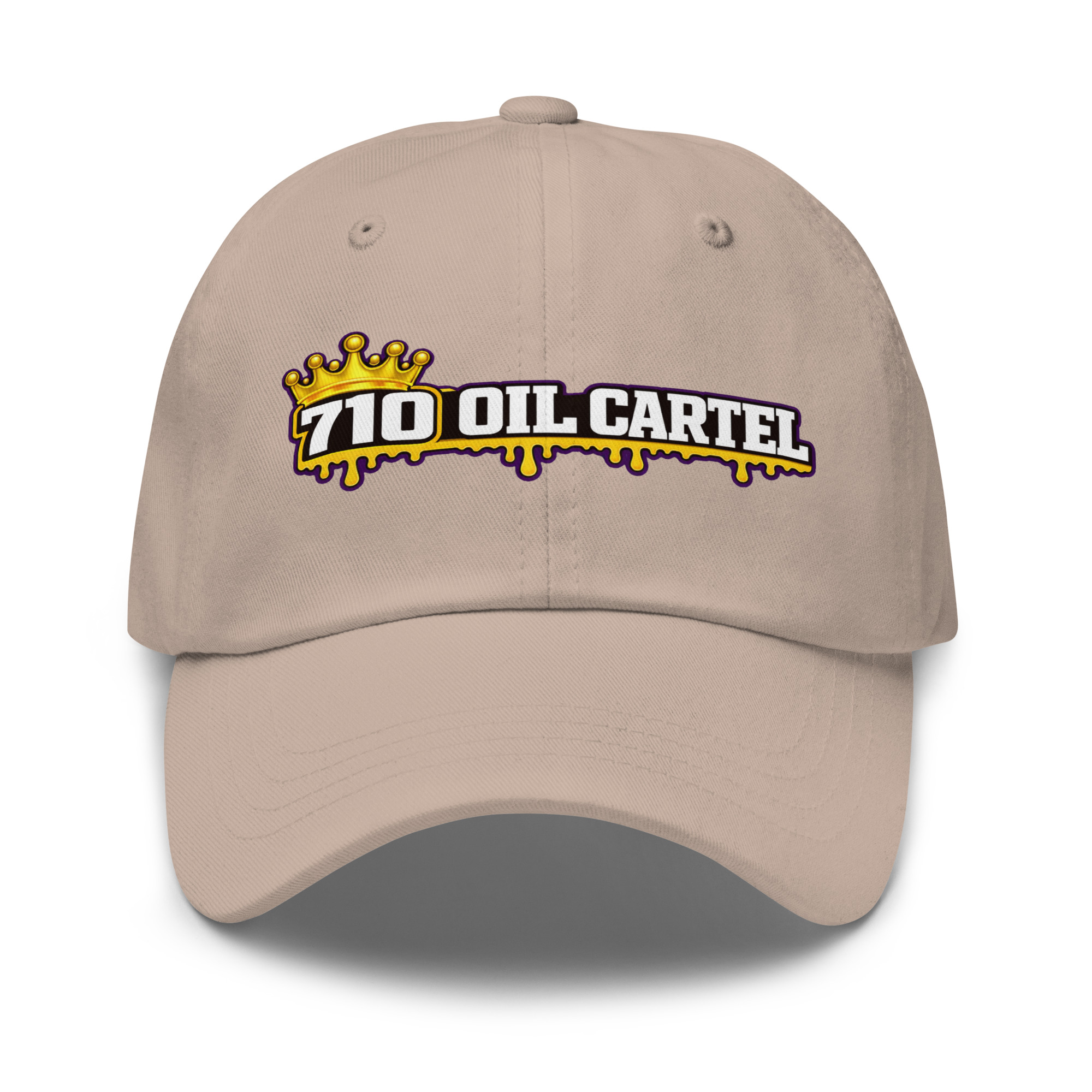The 710 Oil Cartel Dad Hat delivers a clean streetwear look with a bold embroidered front design. Featuring the iconic 710 Oil Cartel crown logo, this classic unstructured cap pairs everyday comfort with unmistakable style. Built on the trusted Yupoong 6245CM dad hat platform, it offers a relaxed fit, curved visor, and adjustable strap for all-day wear.