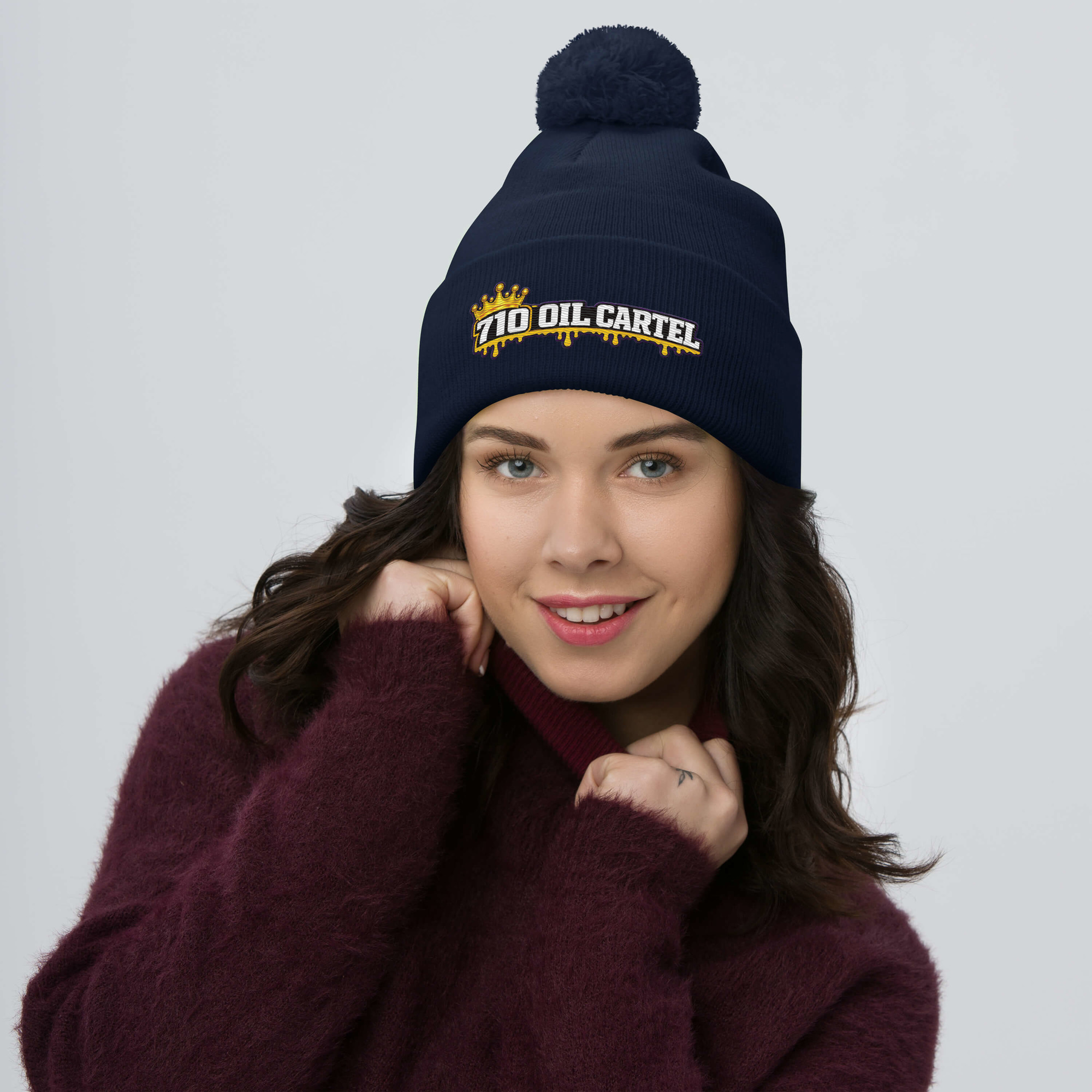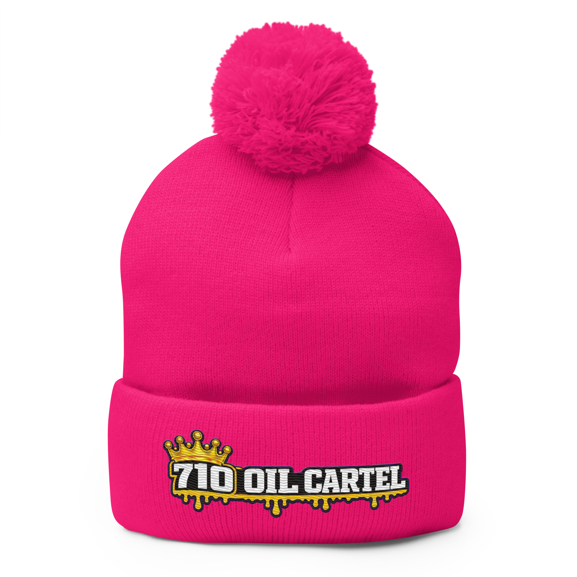 Top off your cold-weather fit with the 710 Oil Cartel Pom-Pom Knit Cap. This classic embroidered beanie delivers warmth, comfort, and a clean everyday look with a fold-over cuff and pom-pom finish. Easy to wear, easy to style, and built for colder days.
