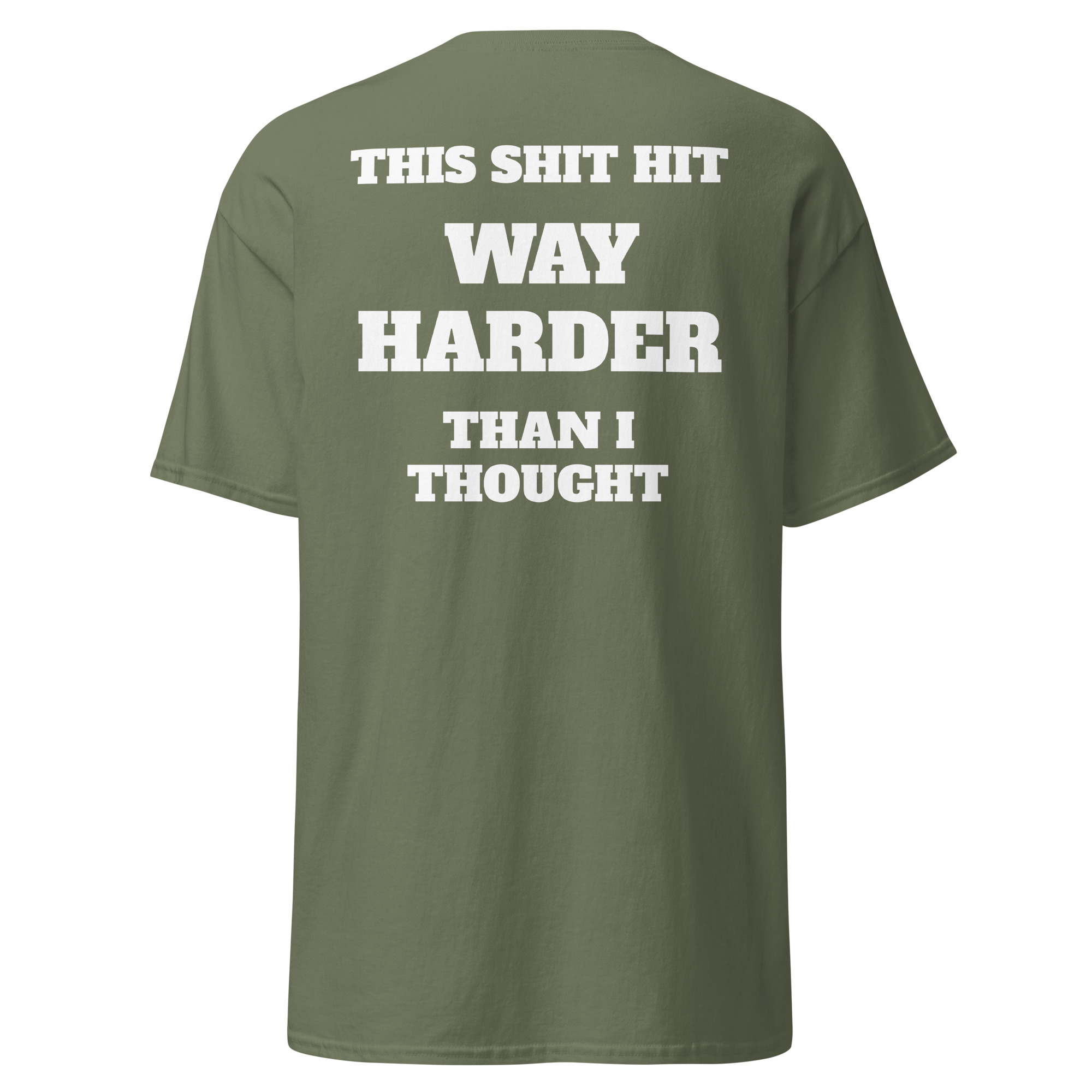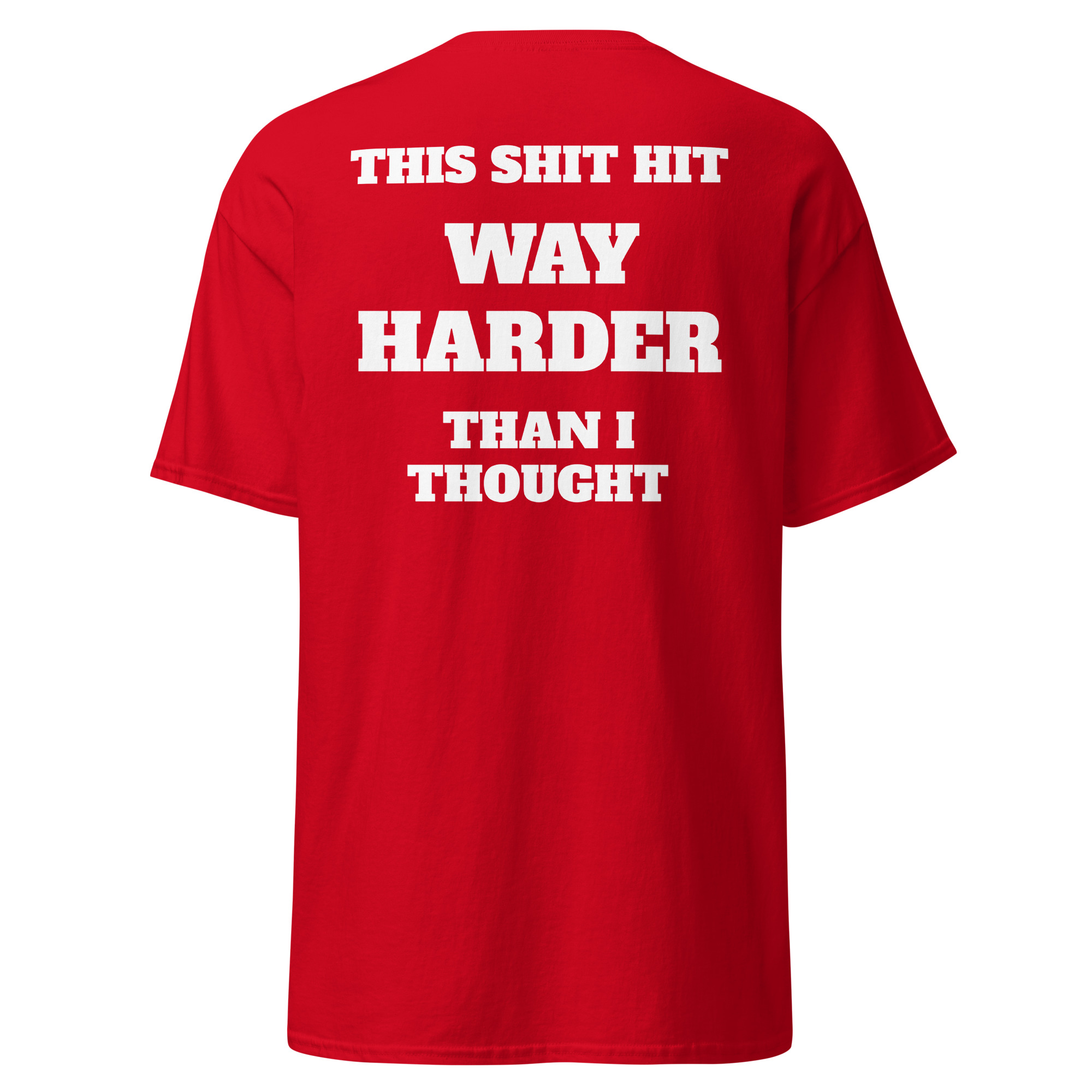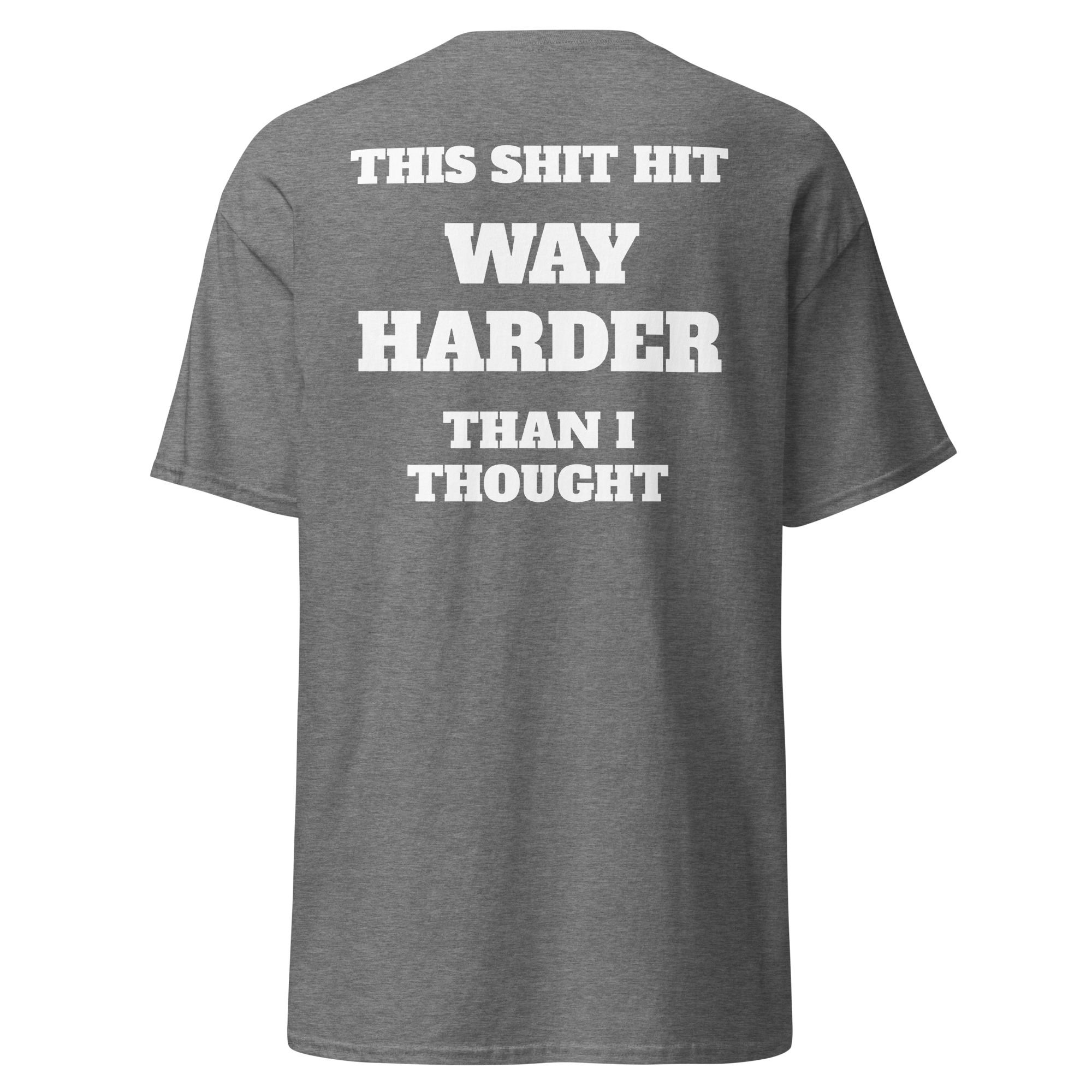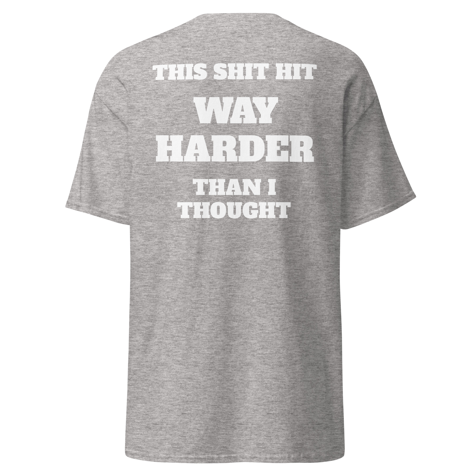 “This shit hit way harder…” yeah, we’ve all been there. Clean stacked typography with a heavy punchline that lands exactly how it should.